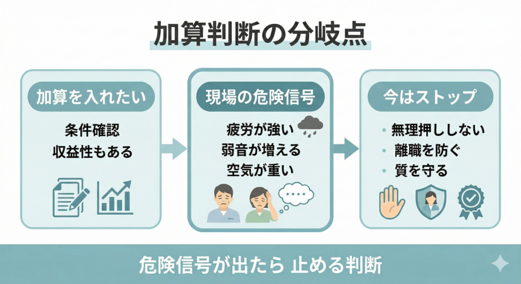 本当に見るべきなのは、その加算を入れても現場が壊れないかどうかです。